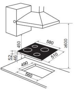 De kookplaat heeft per zone 9 vermogensstanden en is te bedienen aan de hand van touch control. Het apparaat is voorzien van een restwarmteindicatie en oververhittingsbeveiliging. Afmetingen kookplaat (H x B x T): 58,0 x 51,0 x 5,2 cm en de B x T uitspaaringsmaat: 56,0 x 49,0 cm.